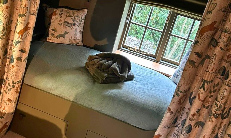 The sitting room is warm and inviting, where exposed beams and large windows add that special touch of character and fill the space with natural light. There are also a TV, Bose speaker and multiple board games for your entertainment.