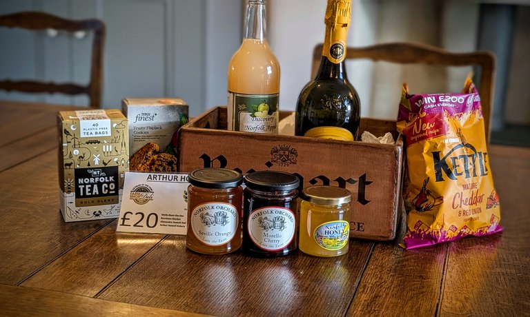 This winter, enjoy a warm welcome with a complimentary, luxury hamper filled with locally sourced treats and essentials. The December, January and February guests for sleeps 2 and 8 will get a luxury hamper to the value of £50!. The hamper is filled with lovely local produce and to make sure you have the best of everything on your holiday, as part of the hamper, there is a £20 voucher for use in the local delicatessen, so you can choose your favourite, freshly cooked meats, cheeses and freshly made bread, just a few minutes’ walk away in Staithe Street.