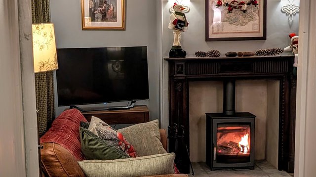 A wood-burning fire casts a gentle glow and a smart TV offers laid-back entertainment for a family movie night. These thoughtful touches come together to create a warm, welcoming haven, perfect for unwinding after a day of exploring.