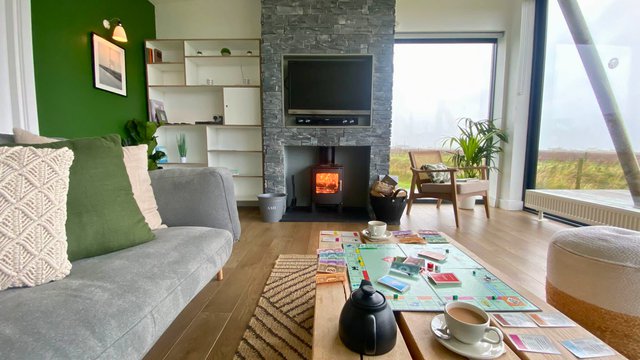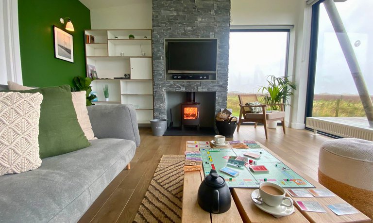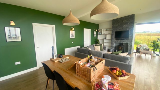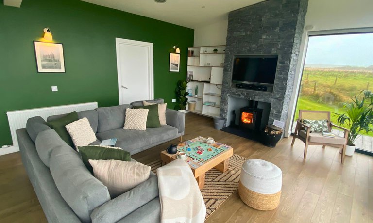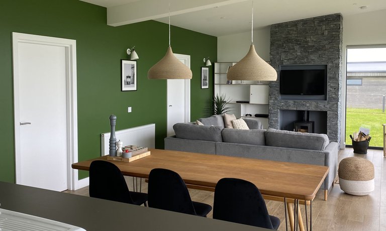Moving into the dining space, a large, 6-seater table plays host to lazy breakfasts, relaxed dinner parties and afternoon grazing, with all crockery and tableware included as standard. Whilst the weather this far North can sometimes be mixed, guests can always rely on the warmth from the in-built wood-burners and deep comfy sofas in the lounge. The large, flat-screen TV and free Wi-Fi ensure that young explorers who need entertaining on rainy days, have plenty to choose from.