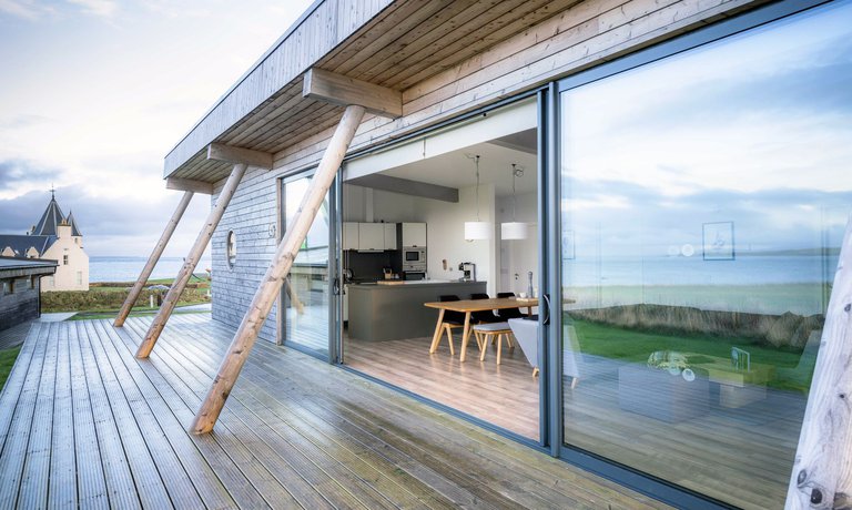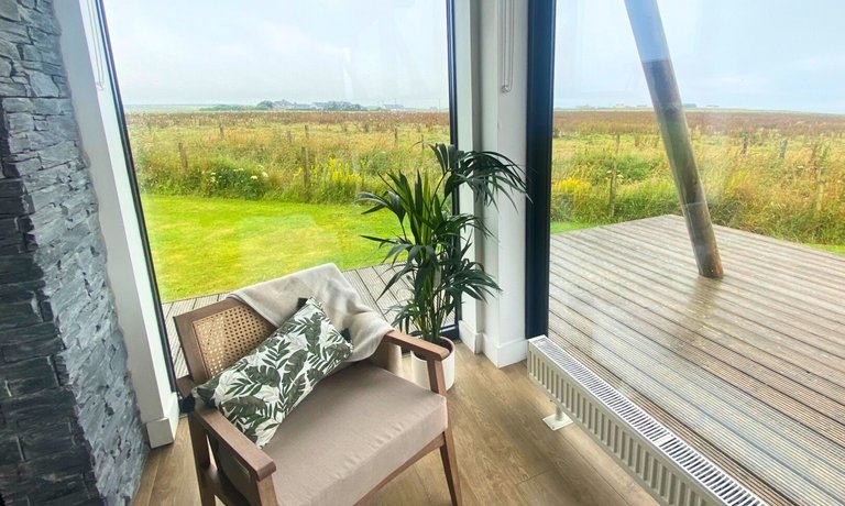 Outdoors, each of the lodges comes complete with a large, wooden deck and comfortable furniture. This provides the ideal spot to rest the legs after a long walk along the impressive coast-line-where you can take in the dazzling blues of the Pentland Firth with views out to the Orkneys and Stroma! For guests staying with us in the Winter, wrap up in a thick blanket and once the sun sets, enjoy front row seats to the elusive Aurora Borealis - the most magical, technicolour show amongst the stars.