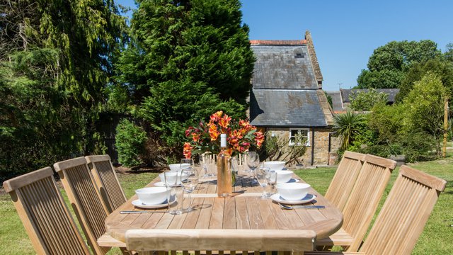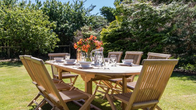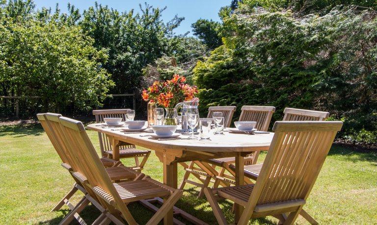 Stepping outside, a good-sized, enclosed, garden with plenty of teak outdoor furniture for soaking up the summer sunshine, plus a charcoal BBQ for long afternoons spent sizzling steaks. There is also convenient, private parking for two cars.