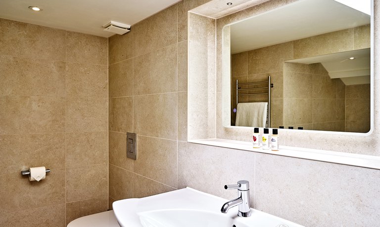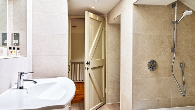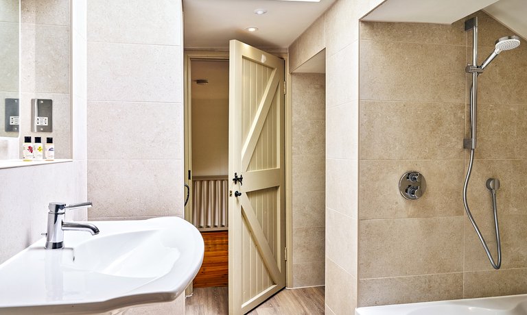 Family Bathroom – Enjoy the indulgent bathroom that features a beautiful, sunken bath with overhead shower and heated towel rail.
