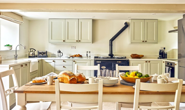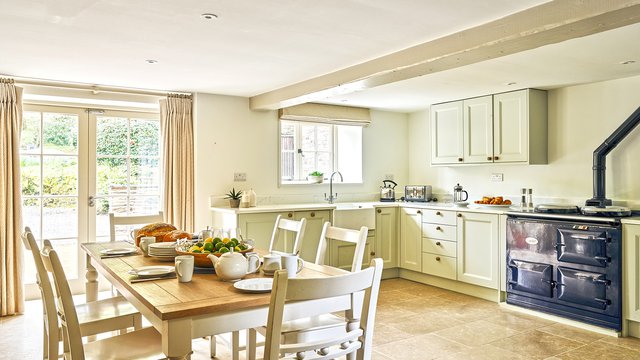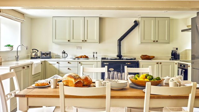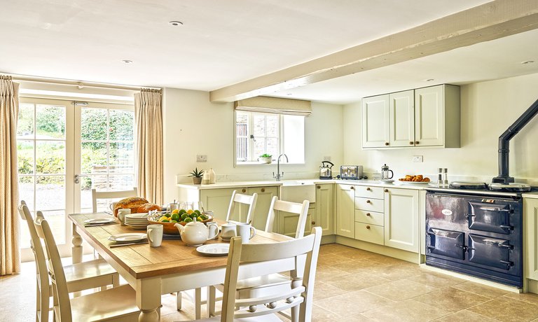 For avid foodies, the large kitchen offers plenty of workspace and an additional island unit complete with integrated ceramic hob and oven. Every appliance and essential piece of kitchenware has been thought of to allow creative cooks to flaunt their culinary flair for family and friends. In chillier months, the blue enamel, oil-fired AGA (complete with AGA kettle!) creates beautiful warmth in the open-plan living area and provides a timeless way to rustle up home-bakes and hearty casseroles.