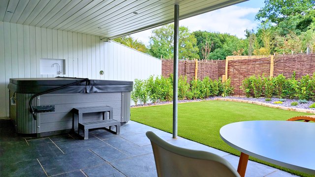 If you would prefer a romantic evening gazing up at the stars, you can relax in the soothing bubbles of your own hot tub, which sits under cover so you can luxuriate in the blissful, effervescent water in less clement weather. Heated by solar panels and a biomass boiler, the tubs are sustainable and environmentally conscious too! Sun loungers and outdoor seating, complete this private, south-facing, enclosed space where you can soak up some sunshine or enjoy a little al-fresco dining with your favourite tipple.
