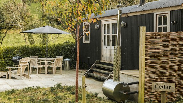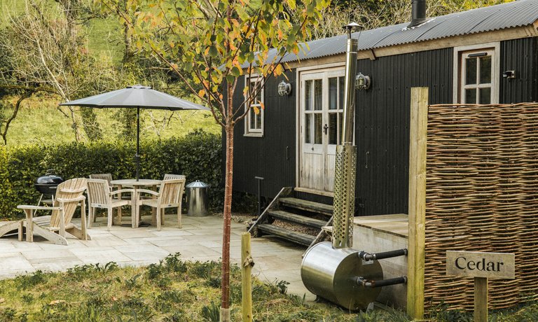 Situated in a former wildflower meadow, with views down through the wooded valley are five beautifully crafted Shepherd's Huts.