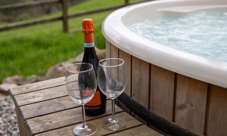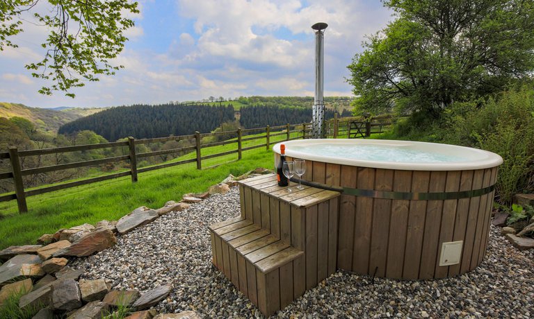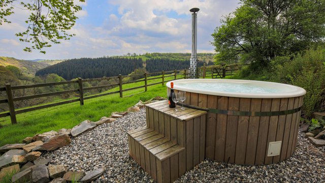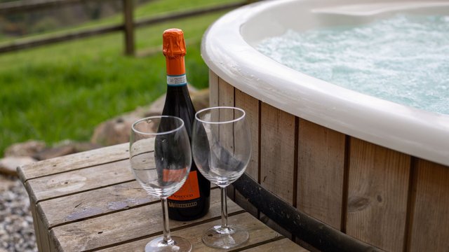 Norton Cottage features a luxurious outdoor woodfired hot tub, which can be made available for all guests to enjoy when the entire site at West Hollowcombe Farm is booked exclusively.